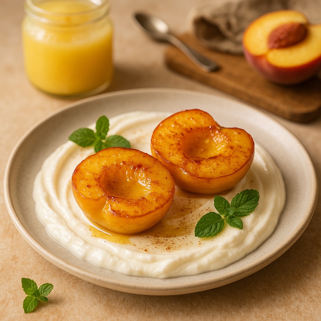 DESSERT DI YOGURT E PESCHE ALLA PIASTRA