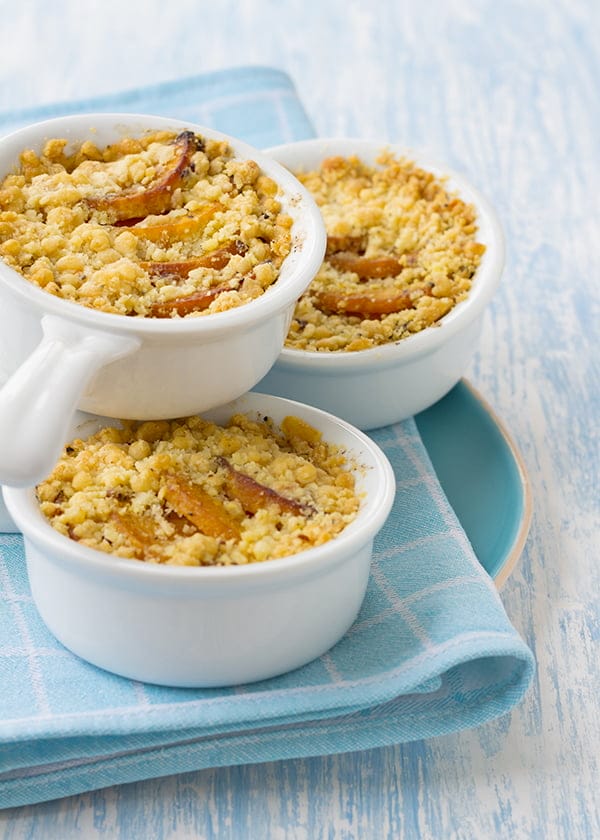 - Disponi in una piccola pirofila da forno metà delle carote e sbriciola sopra una parte del crumble.